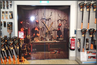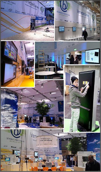 ![]() | ![]() ![]() | Großflächige Beschriftungen mit B1 zertifizierten Folien für Messe und Ausstellung. |